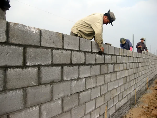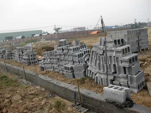 Chuẩn bị gạch block xây tường cho việc thi công, gạch block phải đảm bảo về chất lượng và kích thước.